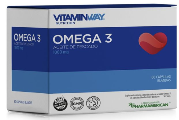 El suplemento nutricional Omega 3 Vitamin Way® favorece la reducción del colesterol, triglicéridos y el riesgo cardiovascular. El consumo de aceite de pescado en cápsulas blandas supera ampliamente a la cantidad de Omega 3 marino que aportaría la ingesta diaria de pescado.